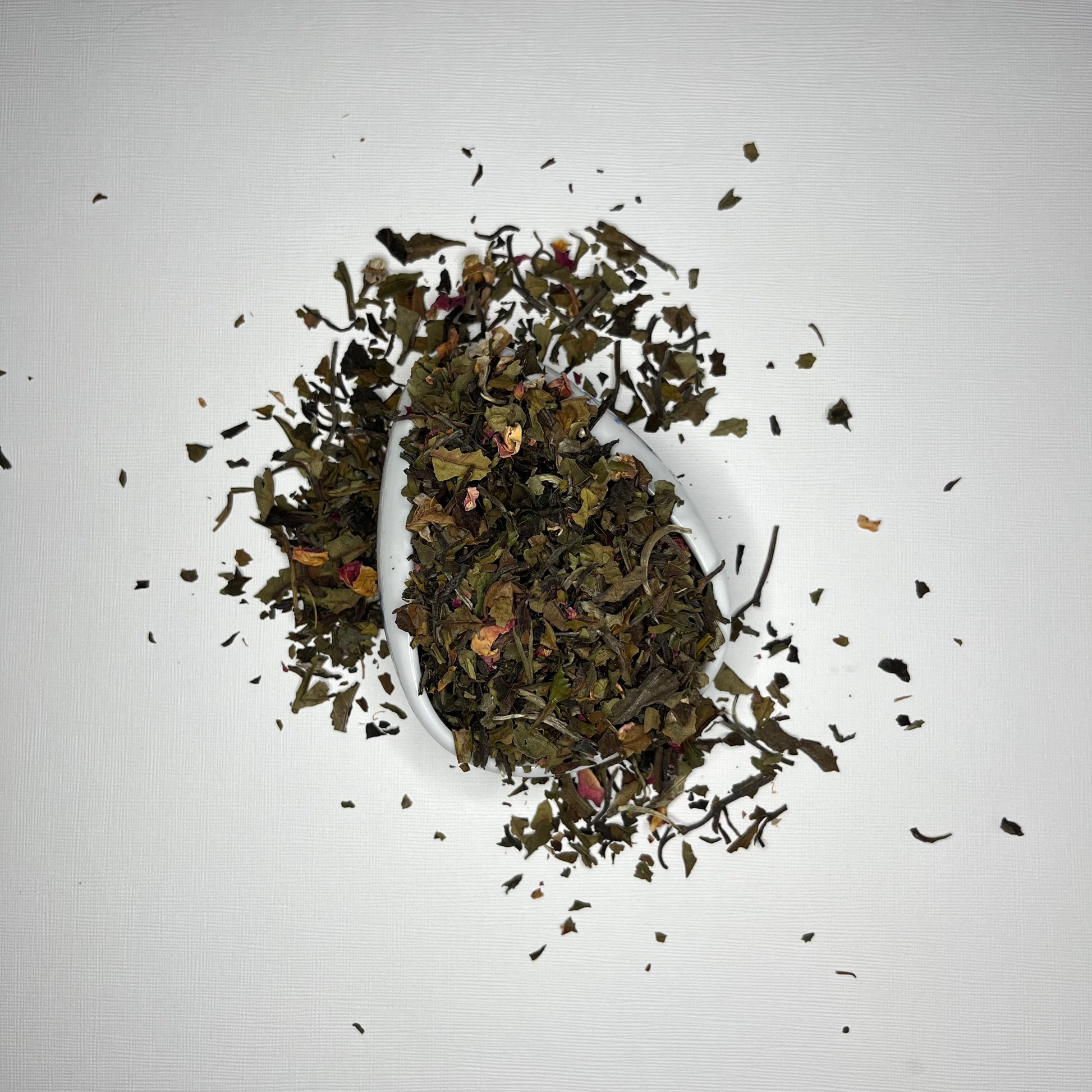 As you steep these leaves, the dance of flavors unfolds, like a meditation session for your senses. The delicate Shu Mee White Tea forms the foundation, offering a whisper of earthiness that soothes the spirit. The jasmine-flavored green tea, with its ethereal aroma, guides you through the pathways of calmness and mindfulness. And then, the rose buds, like a comforting embrace, gently carry you to a realm of inner peace.